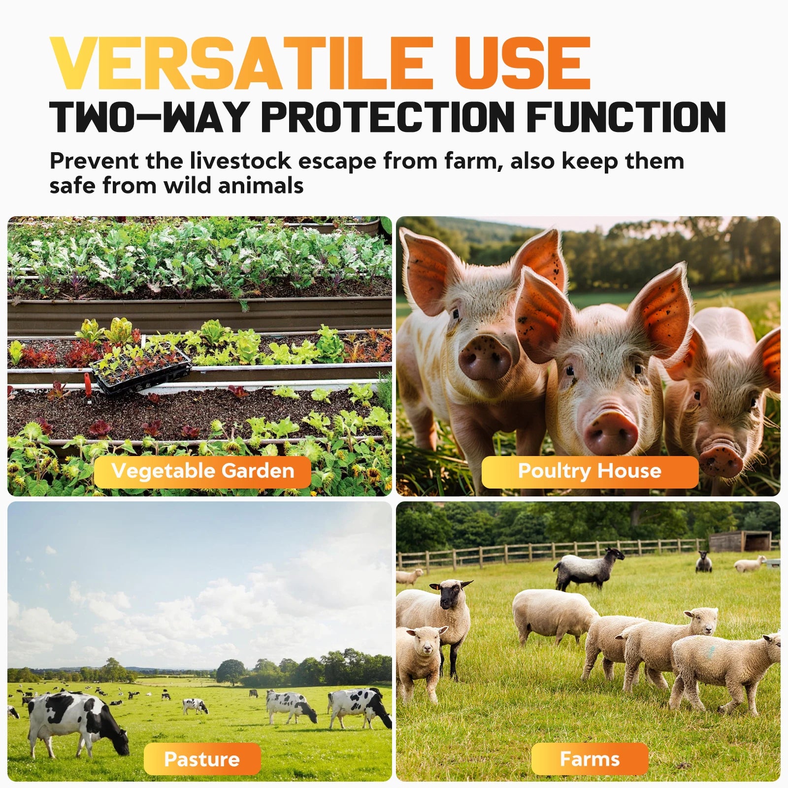 This solar fence energizer covers up to 10km of fencing and operates reliably across extreme temperatures from -20°C to +60°C, delivering consistent protection in rain, snow, heat, or harsh outdoor conditions. It offers an effective barrier against wildlife and protects livestock, including cattle, sheep, goats, and horses.