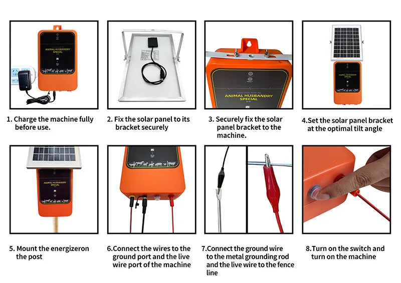 The integrated 7.5W high-efficiency solar panel charges the built-in 6Ah (6000mAh) lithium battery, ensuring continuous operation day and night, even during cloudy weather. It can also be powered through a standard AC plug when needed. Installation is quick and straightforward, with minimal maintenance, making it perfect for busy farmers and landowners.