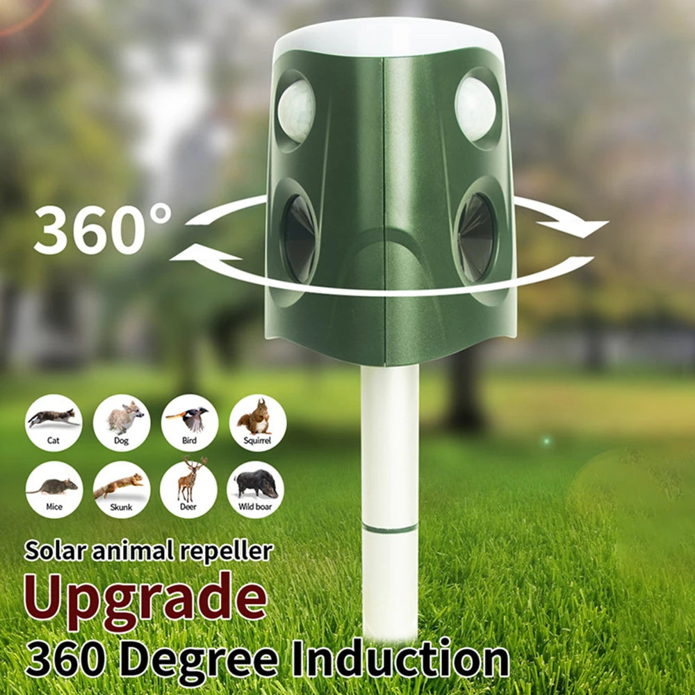 Keep your garden and yard free from unwanted visitors with this Solar Ultrasonic Animal Repeller — a safe, eco-friendly, and powerful way to deter animals without harm.
